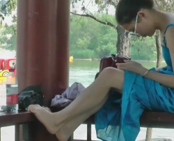 视觉享受!边休息边吃零食的三位美女晾晒肉丝美足