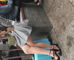 几个结伴游园的丝袜女人晾晒丝袜脚