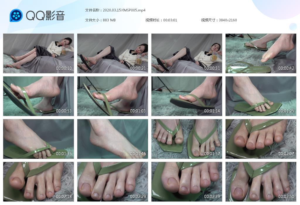 【南国足艺】慕丝沫沫美脚把玩绿色人字拖,脚上的细节非常清晰,动作性感!4K |