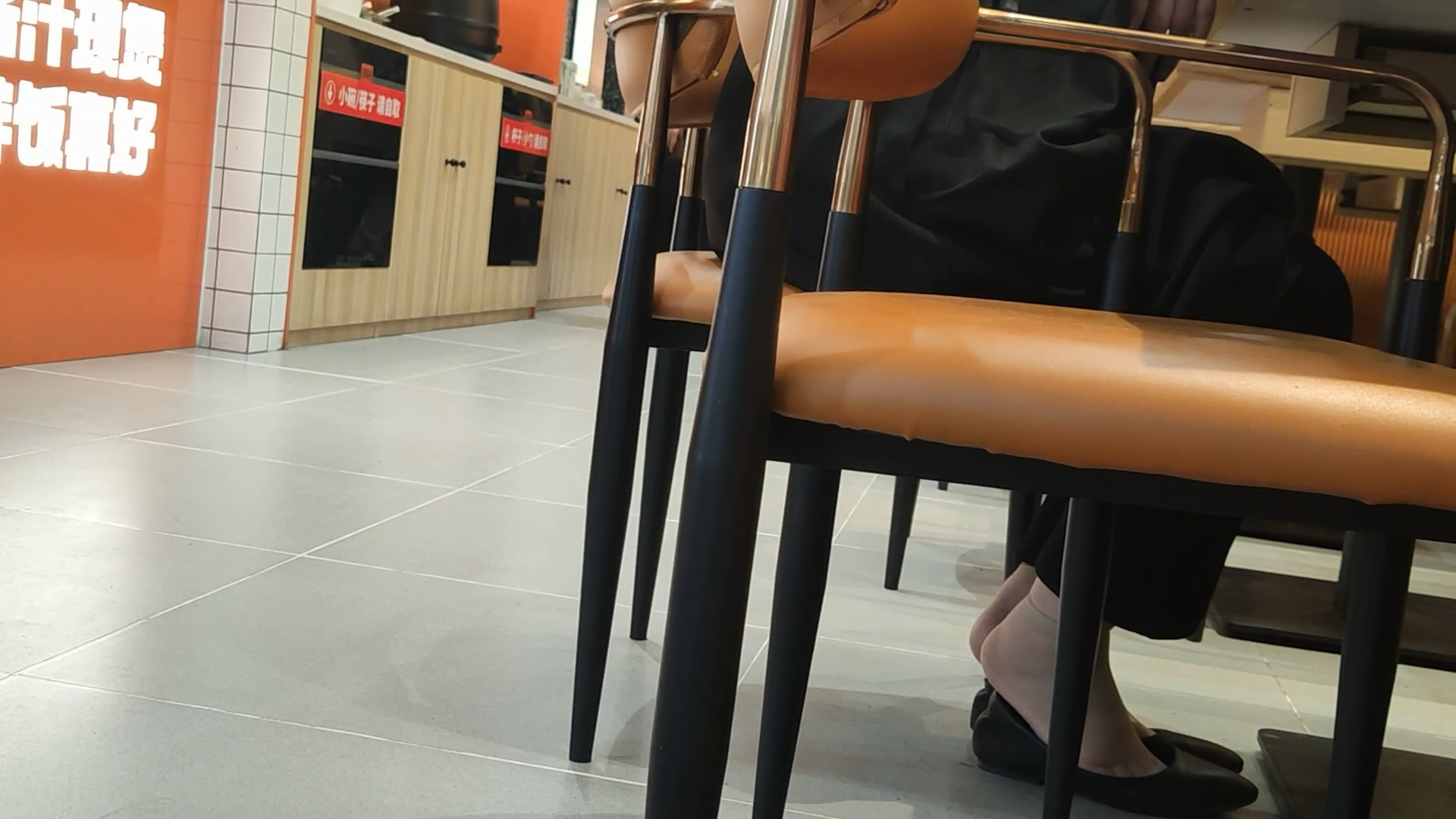 白胖的柜姐吃饭桌下放松短丝脚[02:23]